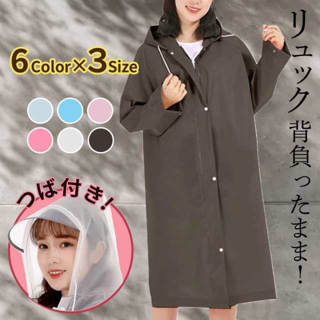 レインコート レディース 自転車 おしゃれ リュック ロング 防水 ポンチョ ママ つば 前開き 通勤 通学 長め オシャレ カッパ 合羽 雨具 雨