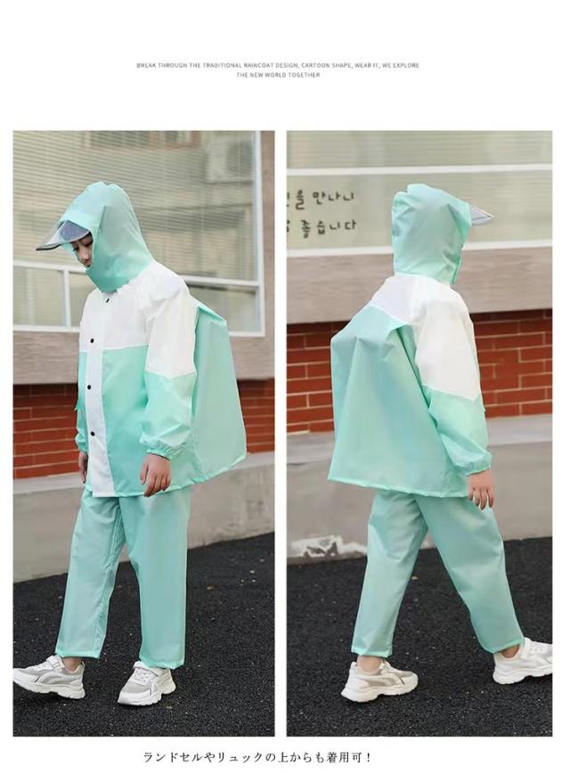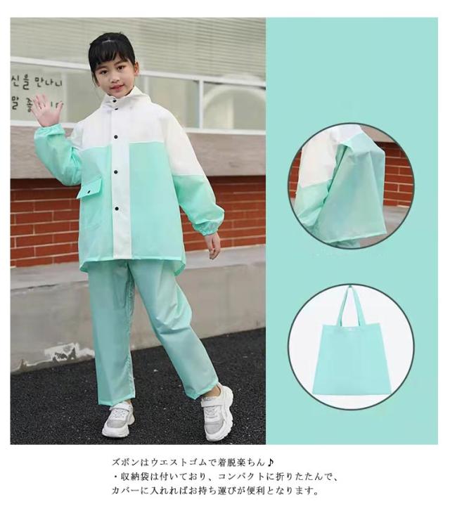 レインスーツ キッズ 上下セット ランドセル対応 子供 ジュニア レインコート セパレート レインウェア 林間学校 カッパ 防水 アウトドア キャンプ フェス 小学校 小学生 収納袋付き 反射材 女の子 男の子 通学 自転車 おしゃれ 中学生 雨具 梅雨対策