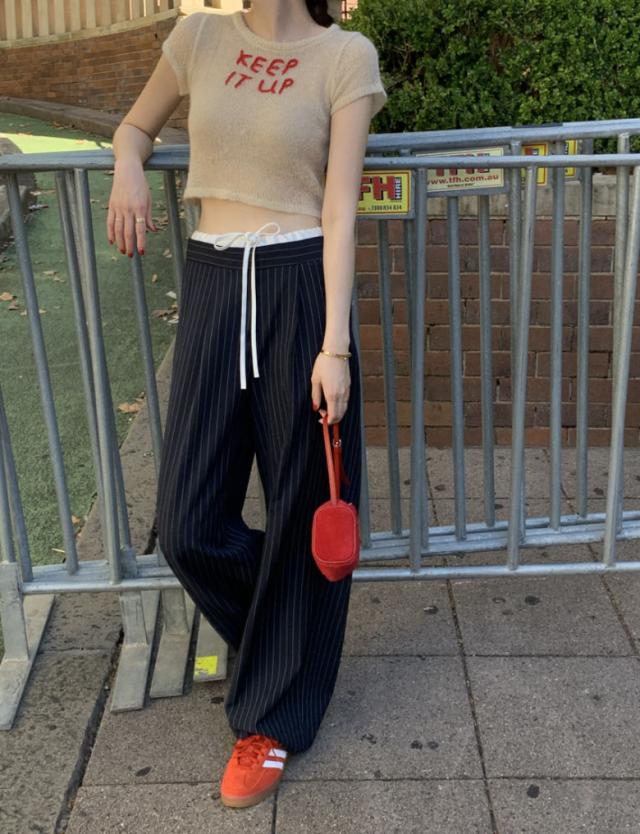 ハイウエストでトレンドをしっかり押さえたカジュアルパンツ
