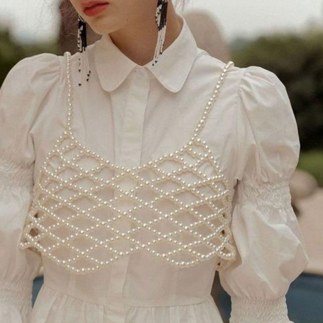 2A26パール ベスト レディース 春 夏 重ね着 トップス きれいめ パーティー フォーマル キャミソール レトロ フェイクパール ボディチェーン オシャレ 可愛い 韓国ファッション シンプル