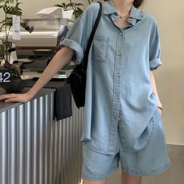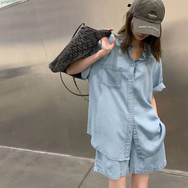 2B28 デニム セットアップ レディース トップス ショートパンツ 2点セット 上下セット 夏 デニムシャツ デニムパンツ ジーンズ カジュアル アメカジ ゆったり 韓国ファッション お洒落