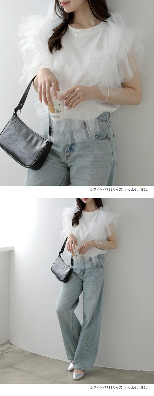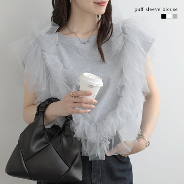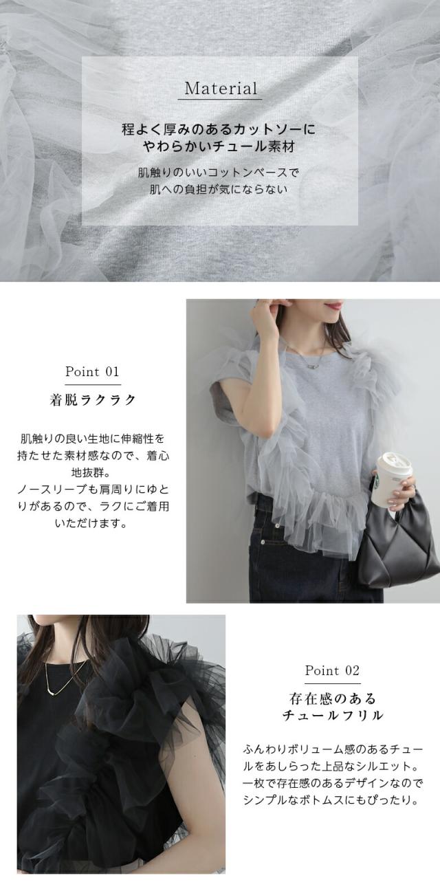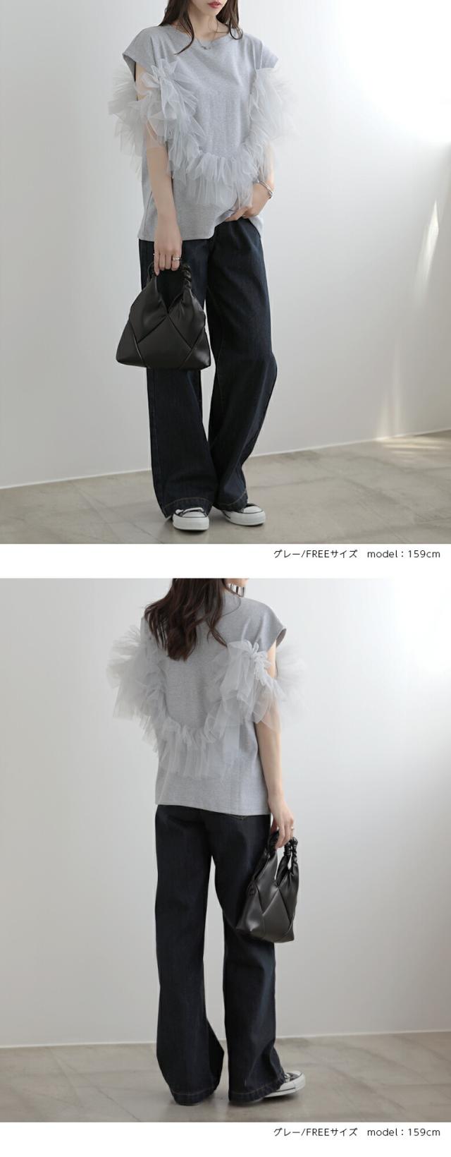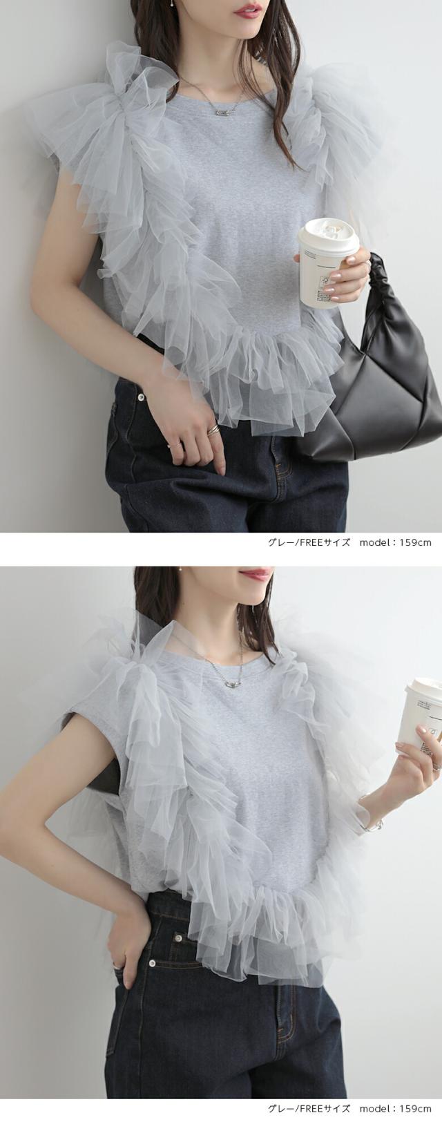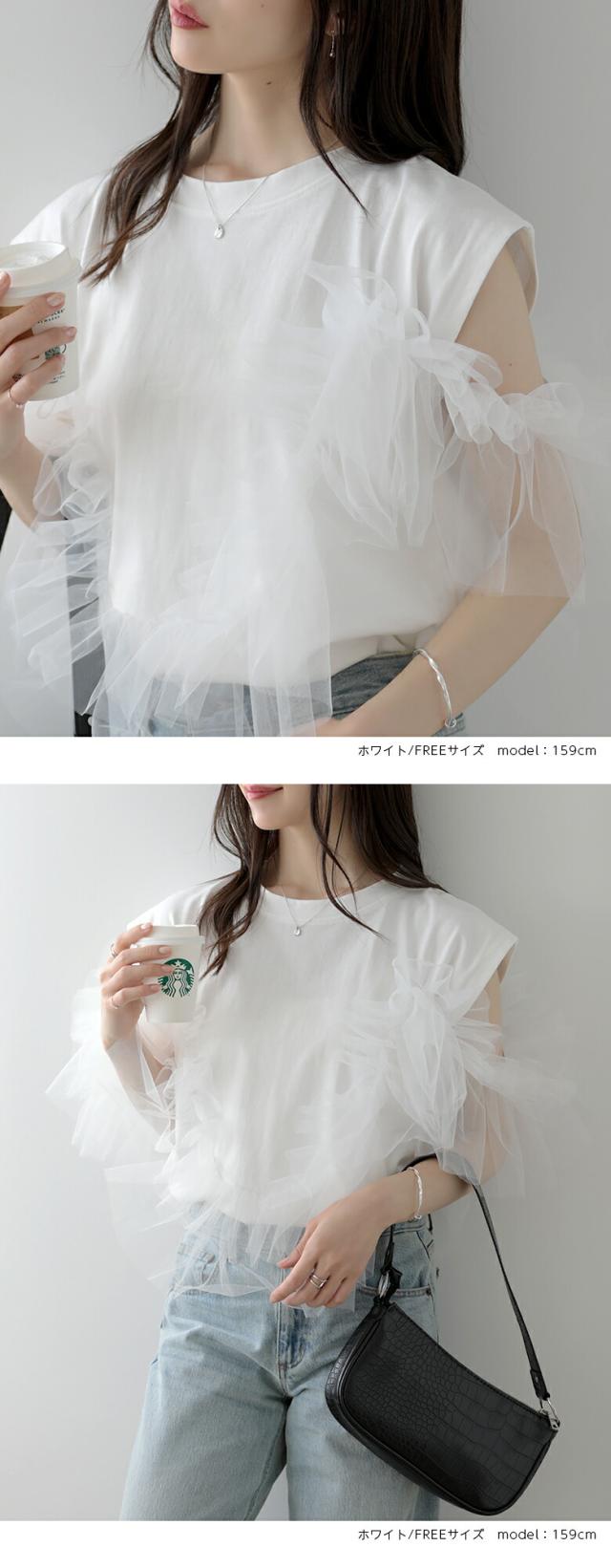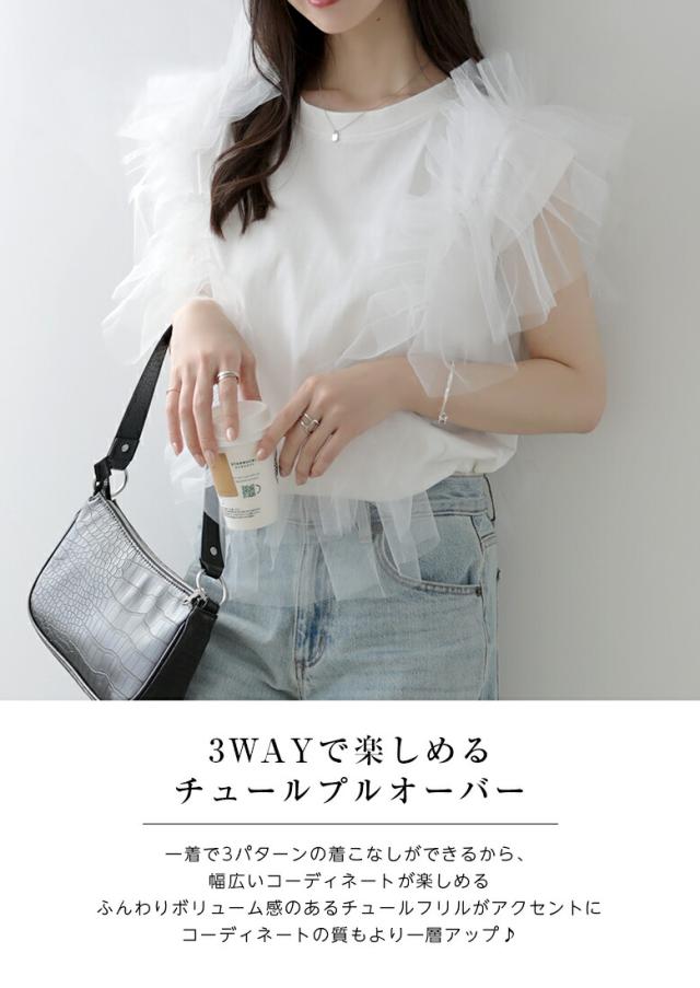 2A37 チュールトップス 3way プルオーバー チュール カットソー レディース 夏 韓国ファッション トップス