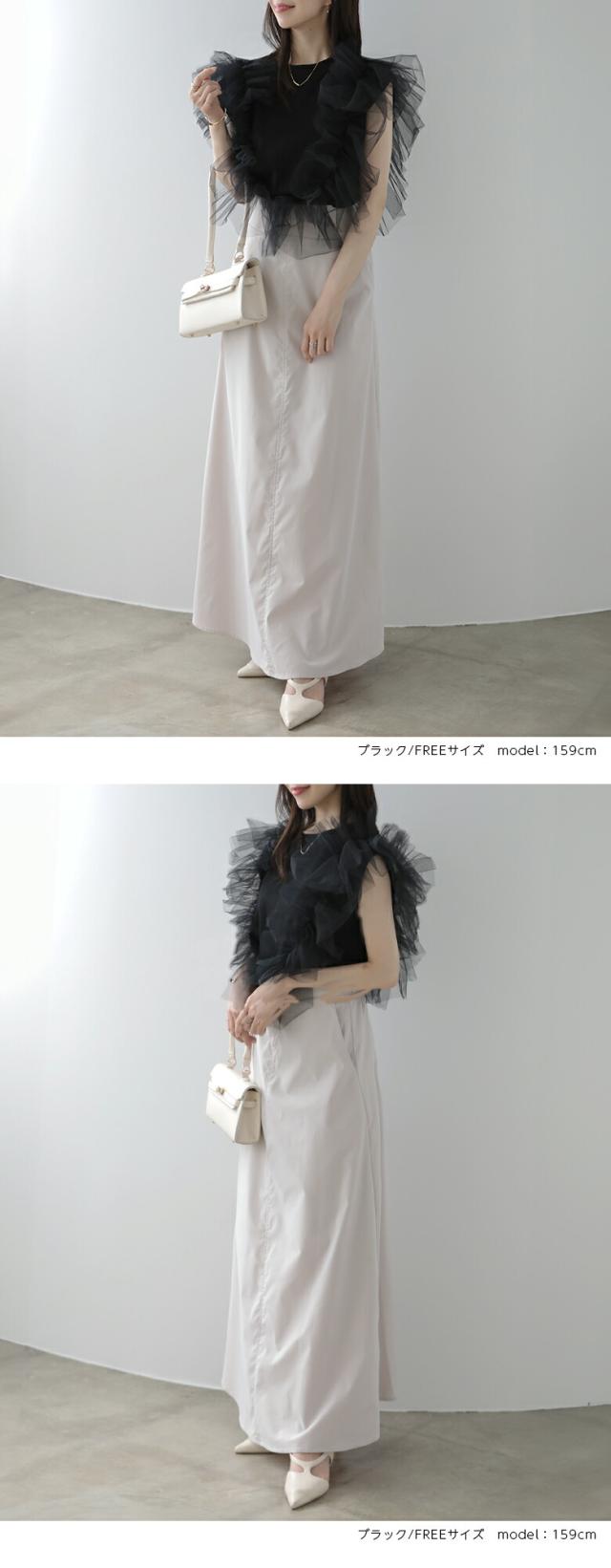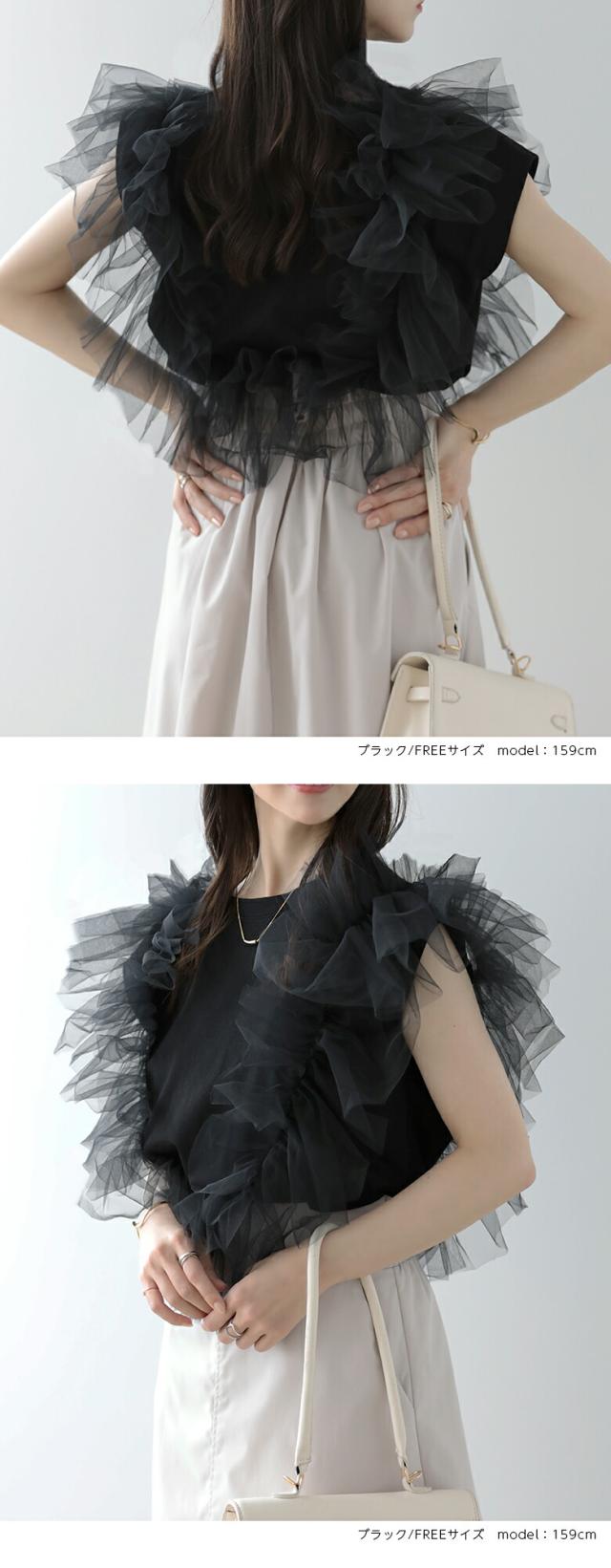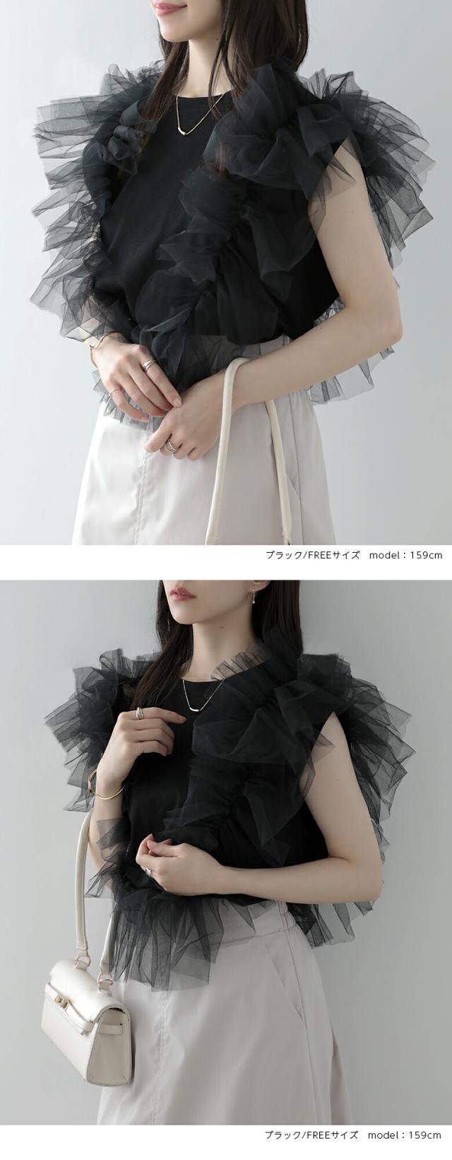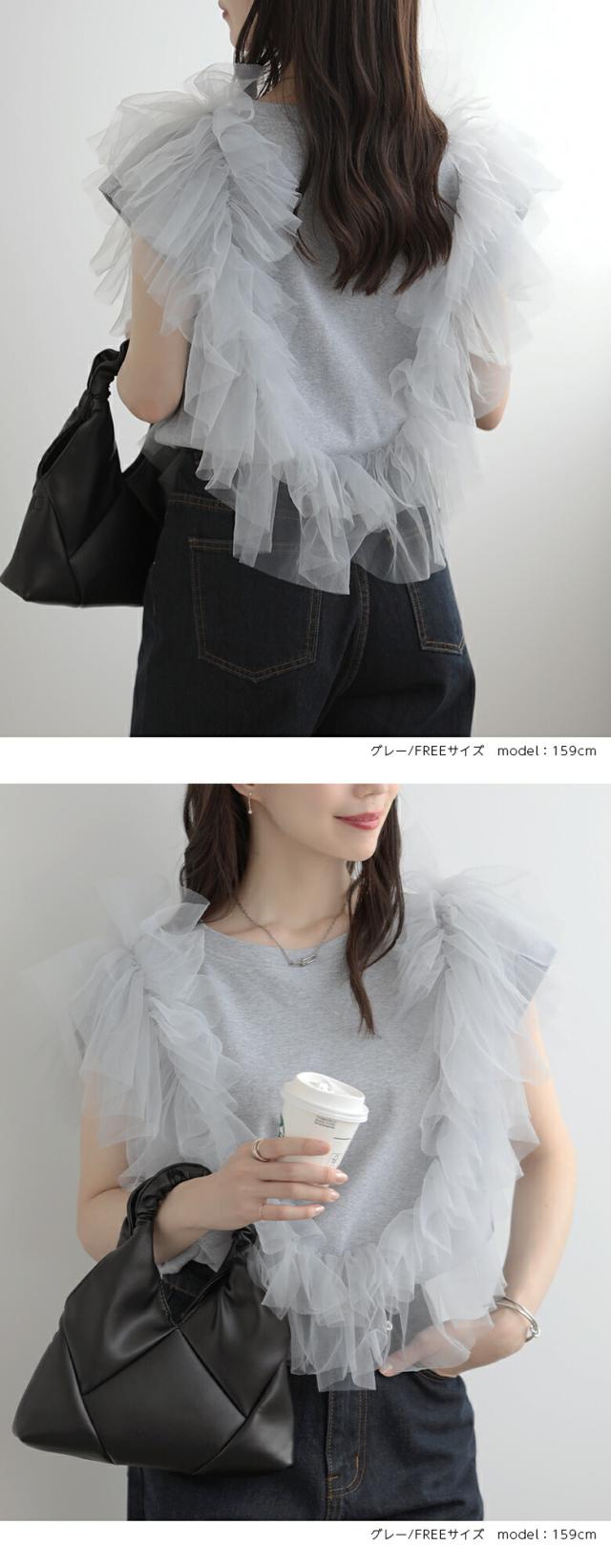 2A37 チュールトップス 3way レディースファッション 人気 ホワイト ブラック グレー