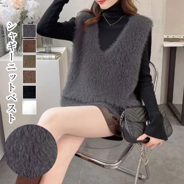 2B28 シャギー ニット ベスト レディース 韓国 トップス Vネック シャギーベスト 秋 冬 ニットベスト 重ね着 レイヤード シャギーニット モヘア おしゃれ きれいめ 韓国ファッ プルオーバー