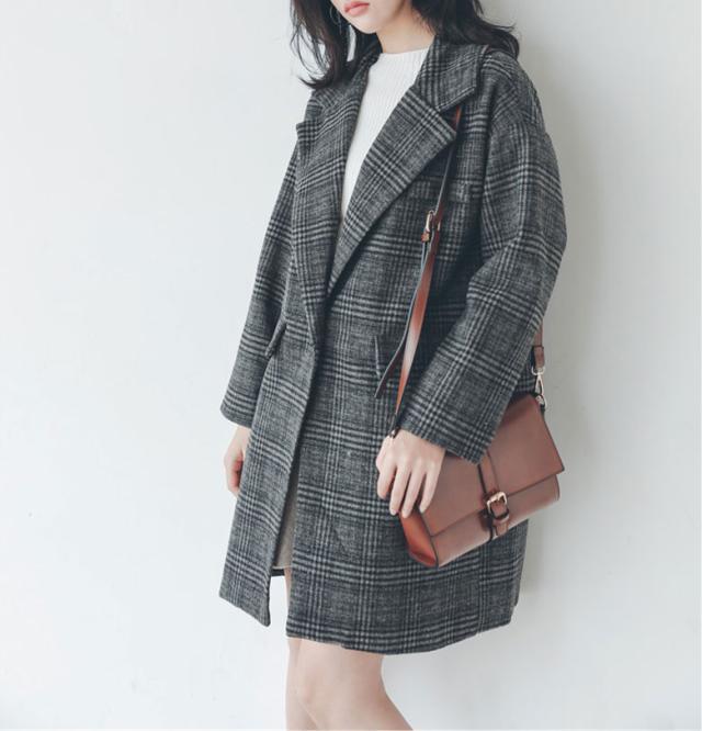 グレンチェック ウールコート レディース 秋 冬 アウター 厚手 通勤 通学 OL ビジネス 羽織り チェック柄 コート チェスターコート カジュアル きれいめ 韓国ファッション ゆったり