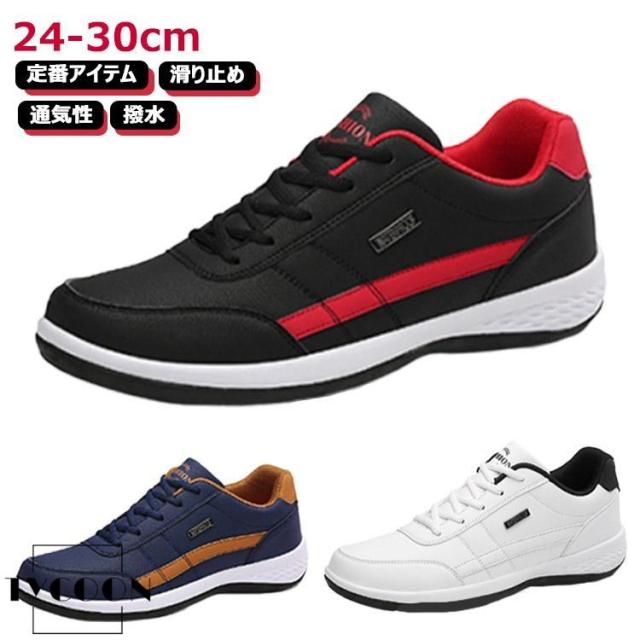 スニーカー 運動靴 撥水 スニーカー メンズ レースアップ 幅広 ウォーキングシューズ 厚底 防水 軽量 雨対策 紳士靴 合皮 カジュアルスニーカー
