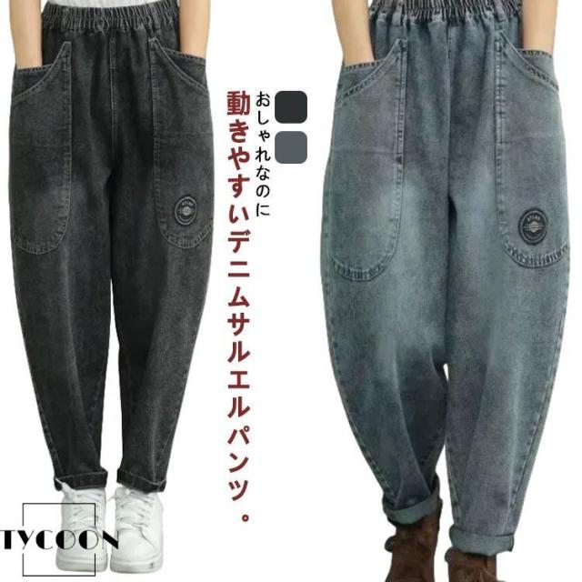 デニム デニム ワイド デニムパンツ サルエルパンツ ゆるパンツ ワイドパンツ レディース バルーン サルエル バルーンパンツ ワイド ウエストゴム