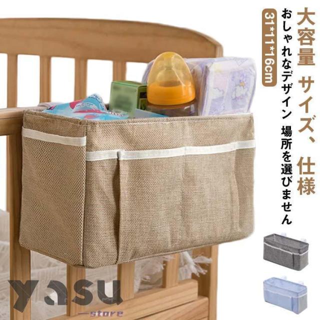 ベッドサイド 収納ボックス 吊り下げ 収納袋 綿麻 ベビーベッド サイドポケット おむつ入れ オムツケース 哺乳類 おもちゃ 収納ケース 小物整理 仕