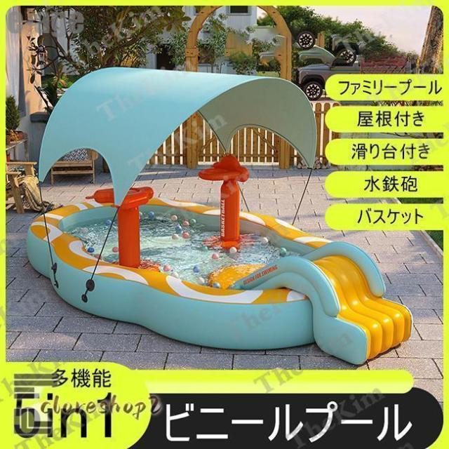 【2025新登場】大型5in1 ビニールプール 屋根付き 紫外線対策 UVカット 滑り台付き スライド 水鉄砲 バスケット ボールプール 夏 水遊び ファミリープール