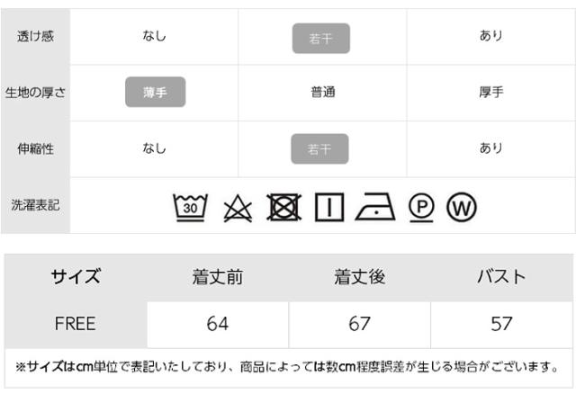 着丈前/後:約 64cm/約 67cm、 バスト:約57cm