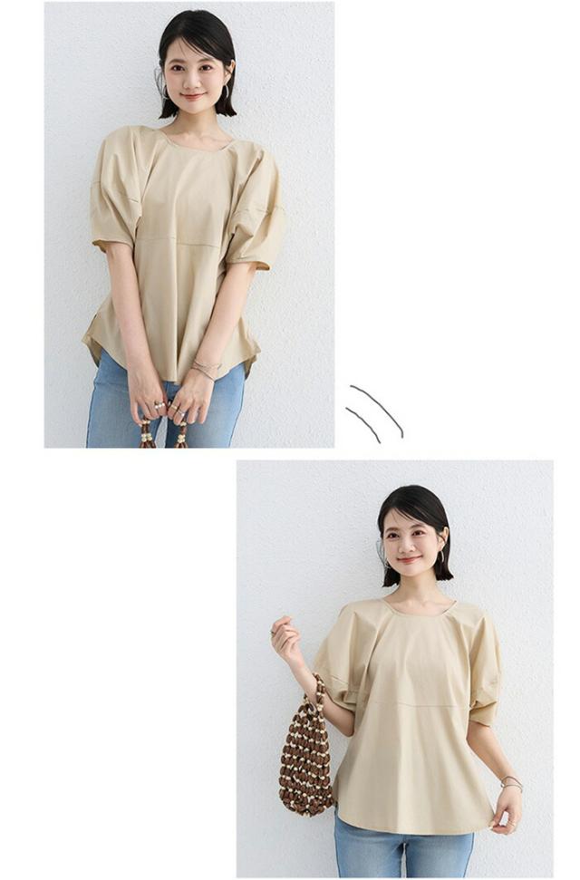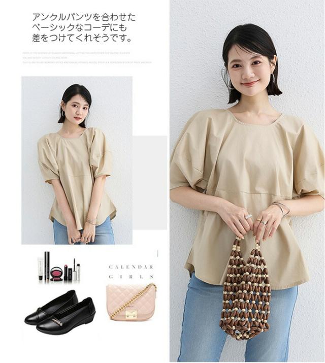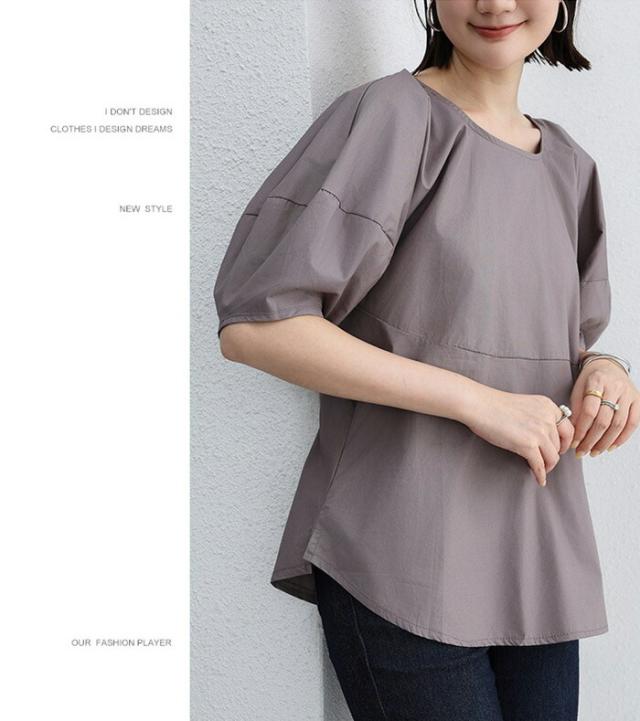 2A35 パフスリーブシャツ ボリューム袖 トップス 大人可愛い オーバースリーブ 半袖トップス 2024春夏 ブラウス