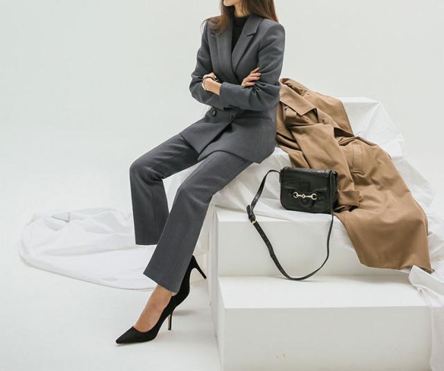 パンツスーツセットアップ。