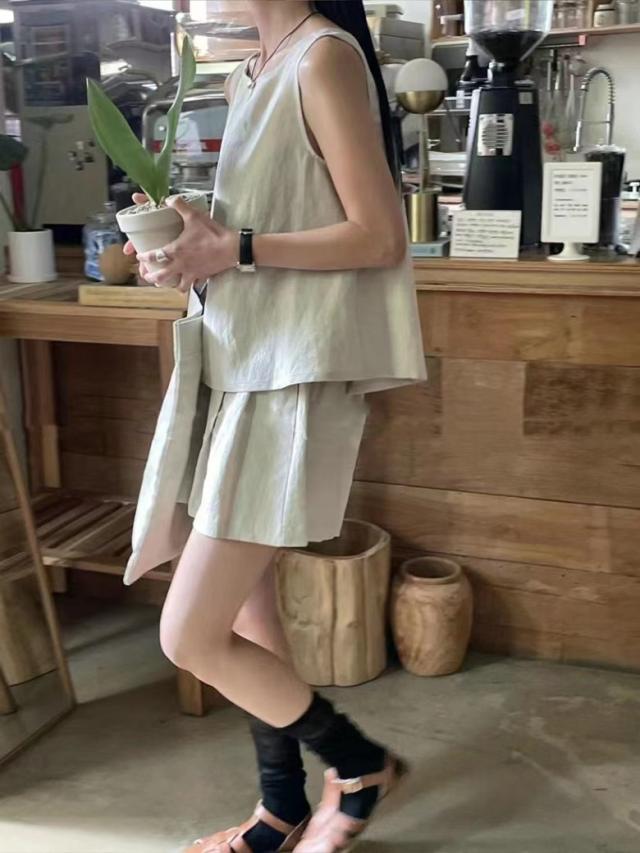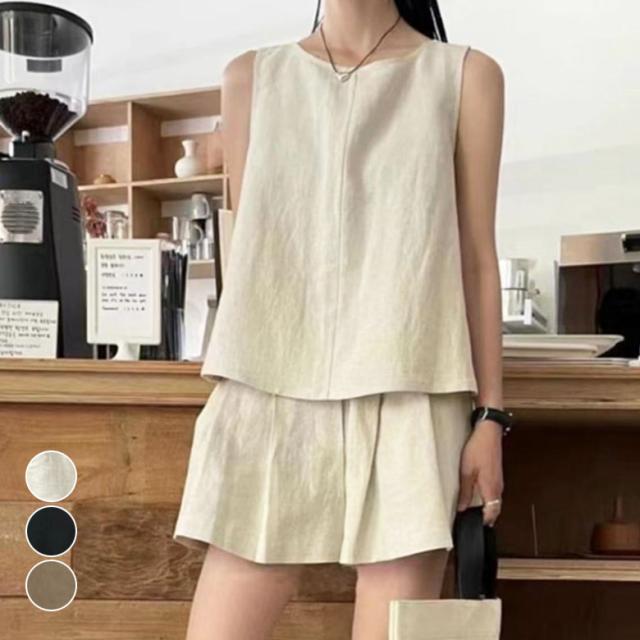 2A22 リネン セットアップ レディース 上下セット ノースリーブ トップス ショートパンツ ルームウェア セット 2点セット カジュアル 部屋着 通気性 春 夏 韓国ファッション 涼しい