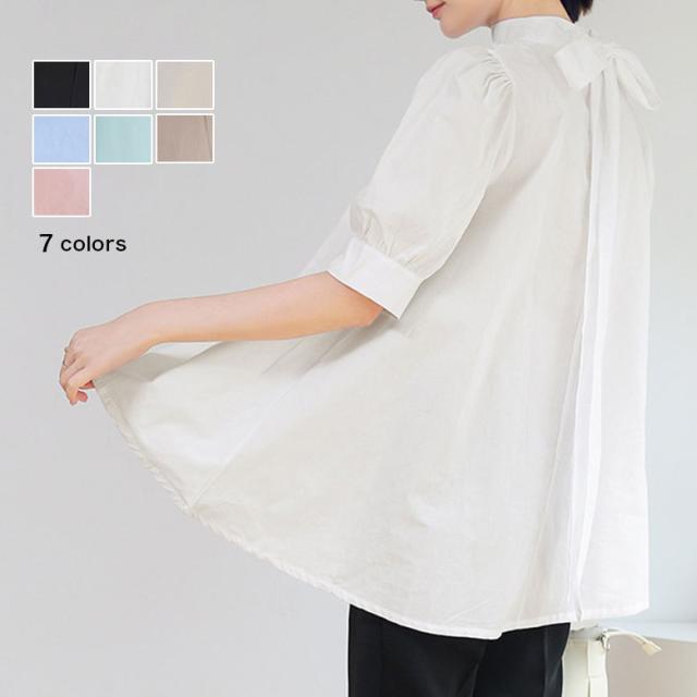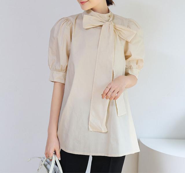 2B7 リボン付き ブラウス レディース 半袖 春 夏 トップス シャツブラウス リボンブラウス 半袖ブラウス コットン 綿 きれいめ 上品 清楚 ゆったり 大きいサイズ 韓国ファッション カジュアル