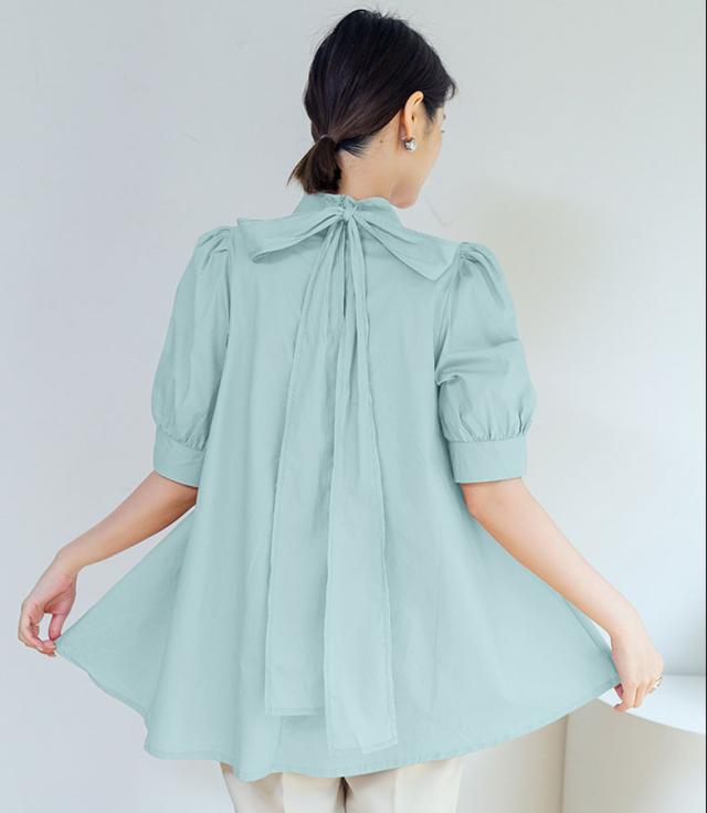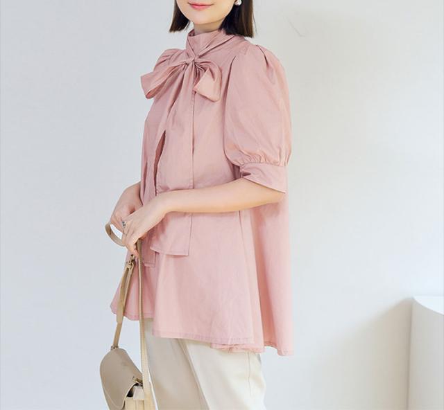 きれいめデザインのリボン付きブラウス