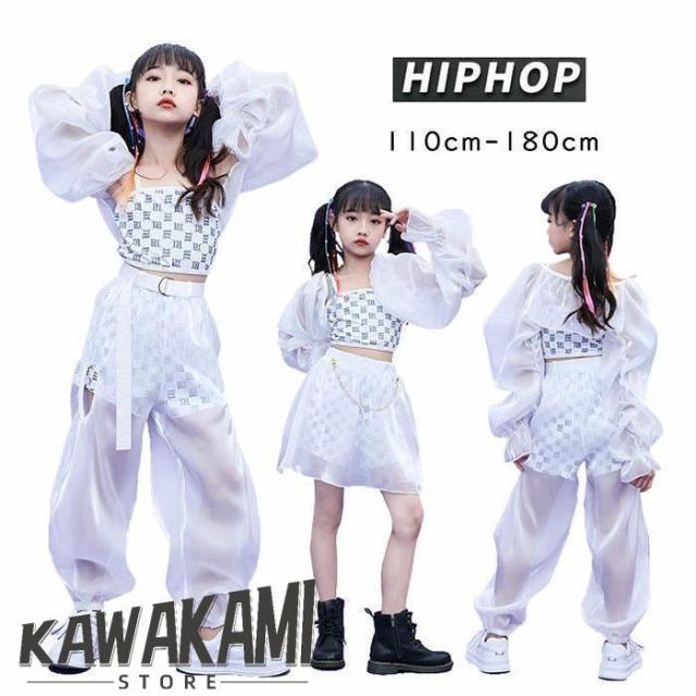 キッズダンス衣装 セットアップ 白 トップス ダンス衣装 パンツ チア スカート キッズ ダンス 衣装 ヒップホップ 韓国 子供服 女の子 おしゃれ hiphop k-pop ダ