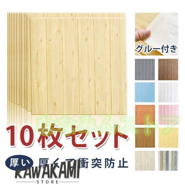 10枚セット 壁紙 レンガ 木目調 壁紙シート 腰板風 3D 立体 クッションシール 自粘 防水 防音 防汚 リメイクシート 壁 DIY リフォーム 便利 70×70cm セット