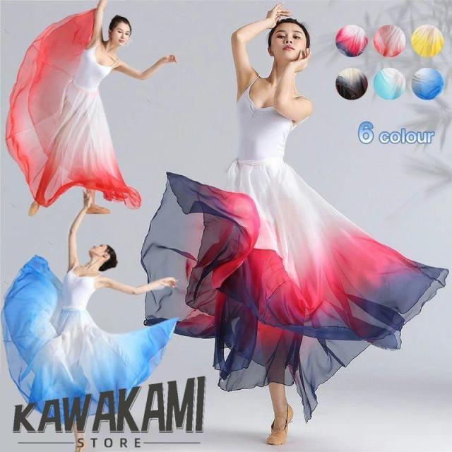 ダンススカート 巻きスカート グラデーション 540°/720°バレエ ベリーダンス スカート単品 ロングスカート ボ エレガント 古典舞踊ダンスウェ