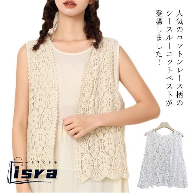 コットンレース 透かし編み トップス かぎ編み ボレロ ジレ ベスト レディース ノースリーブ ニットベスト ニット 春 秋 夏 大きいサイ