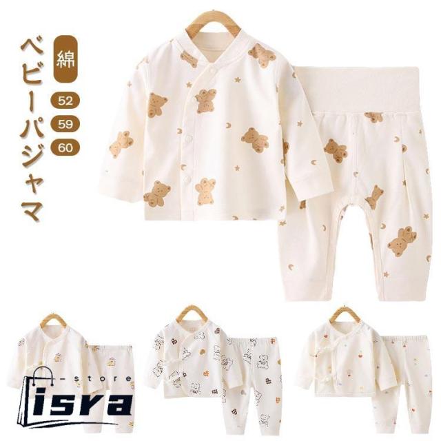 新生児 59 長袖 ベビー ベビー 綿 60cm パジャマ 上下セット 52 赤ちゃん コットン 女児 女の子 柔らかい 男児 キッズ 前開き 寝巻き
