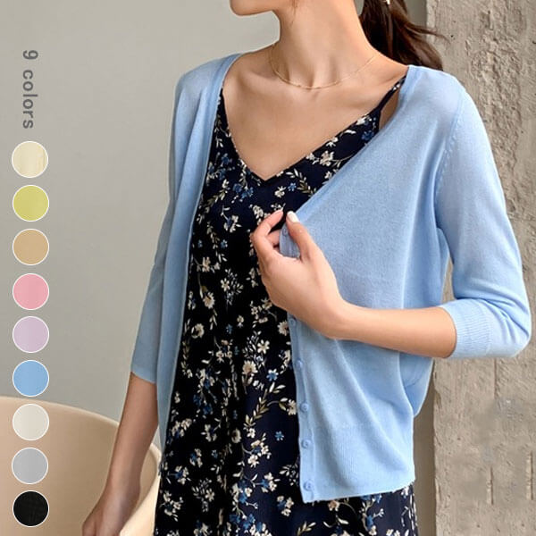 2A29】9カラーサマーニットカーディガン Vネック 7分袖トップス 薄手 カーディガン 羽織り 無地 サマーニット 大きいサイズ 冷房対策 UVケア 紫外線対策 長袖 透け感 大人 お 羽織物