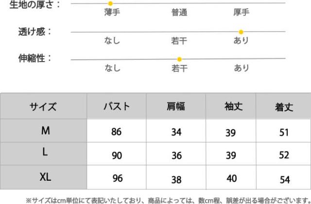 サイズ【着丈約51cm、肩幅約34cm、バスト約86cm、袖丈約39cm】