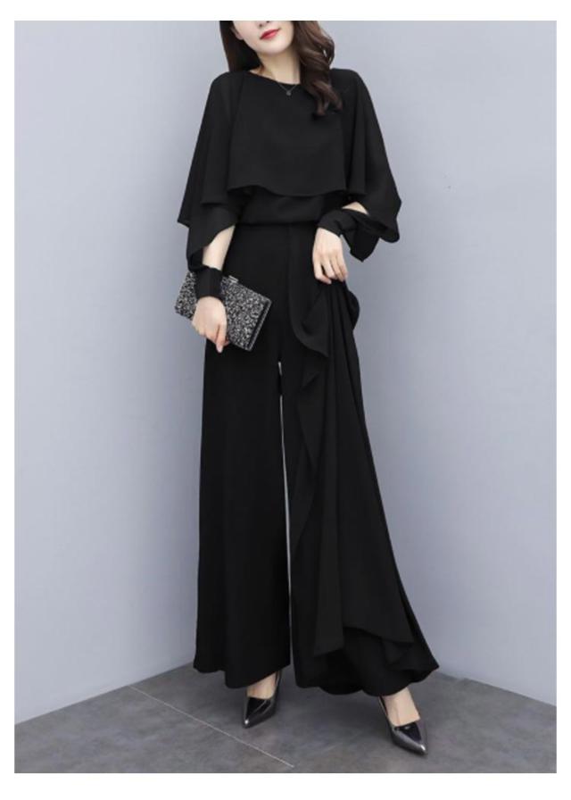 | 動きやすいセットアップのパンツドレスです。 フレア袖が動きに合わせて揺れ、見た目も華やか。さりげなく二の腕もカバーしてくれます。 広めの裾がエレガントなワイドパンツ。 上下別々で使える嬉しいセットアップ 着脱も楽ちんです。 シンプルなパンツドレスなのでコーデ次第で、卒業式や入学式、結婚式、パーティーなど。様々なシーンで使えるアイテムです。 | |