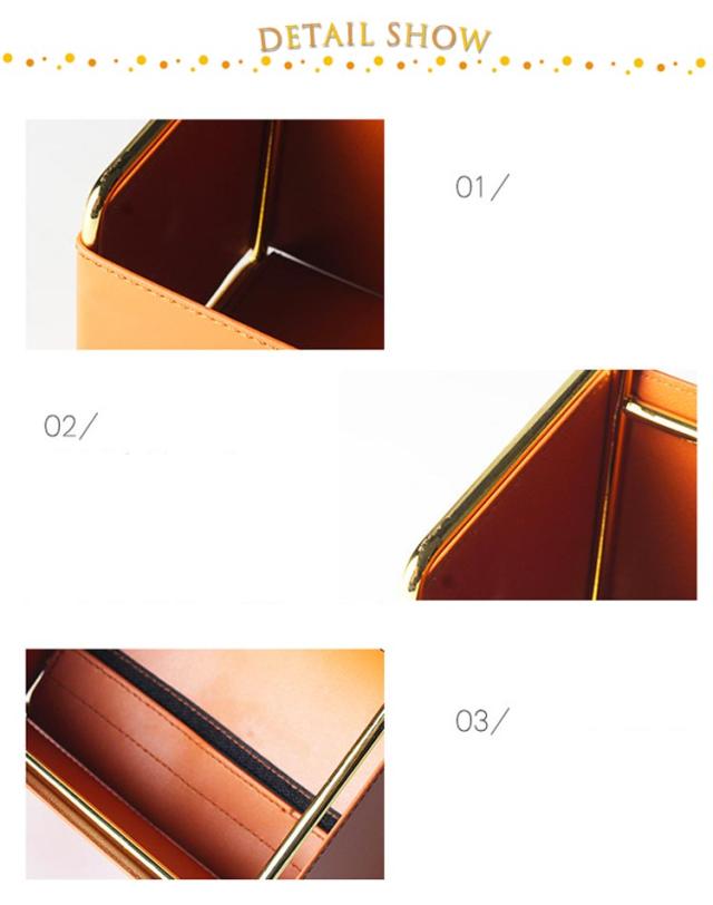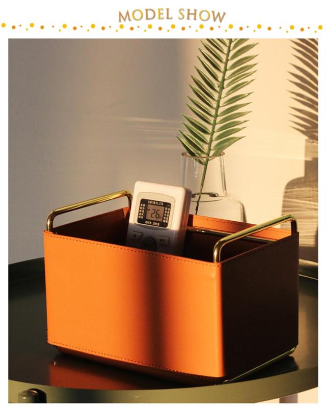 | 高級感溢れるレザー調の収納ボックスです。 持ち運びに便利なハンドル付きです。 リモコンや雑誌などを収納したり、メイク用品やスキンケア用品や掃除用品などを収納したりと様々な場面で使える収納ボックスです。 | |