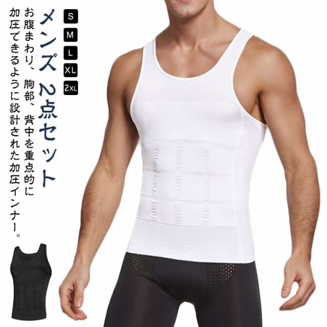 加圧インナー メンズ 2点セット 加圧タンクトップ 加圧シャツ タンクトップ ノースリーブ トップス 加圧下着 補正インナー 補正下着 Uネック ウエスト お腹 引き締め 筋トレ サポート ランニング ダイエット コンプレッションウェア 圧力 S M L XL 2XL