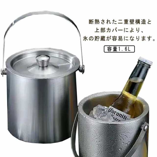 1.6L ワイングッズ ワインクーラー ステンレス アイスバケット シャンパン アイスペール ボトルクーラー シャンパンクーラー アイスコンテナ 保冷容器 蓋付き ハンドル付き 真空二重 うち飲み 卓上