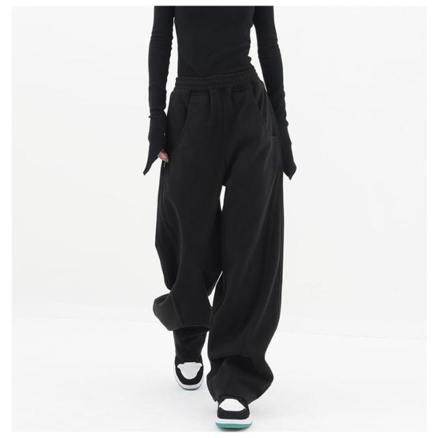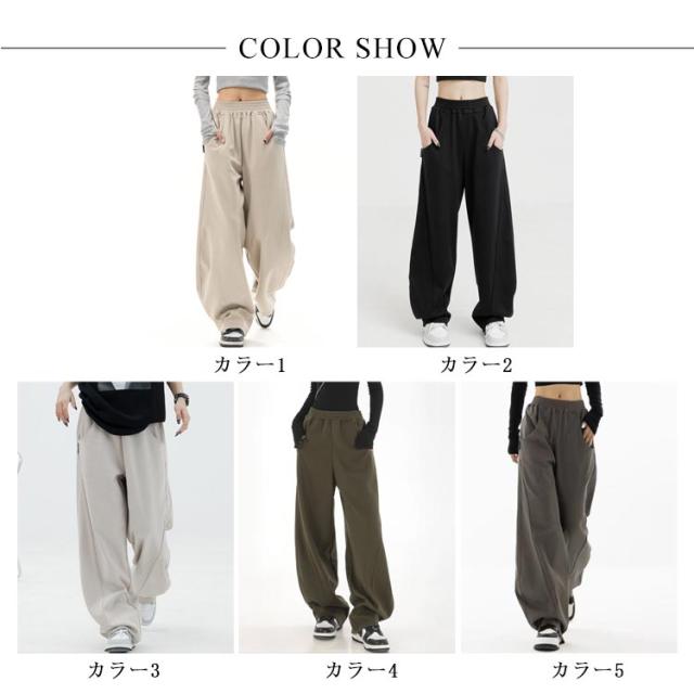 レディース パンツ ゆったり ロングパンツ ワイド スウェット ウエストゴム ワイドパンツ スエット 下半身 ワイド 体型カバー カーブパンツ スポーツウェア ウエストゴム カーブパンツ スエットパンツ バルーンパンツ カジュアル 通勤 部屋着