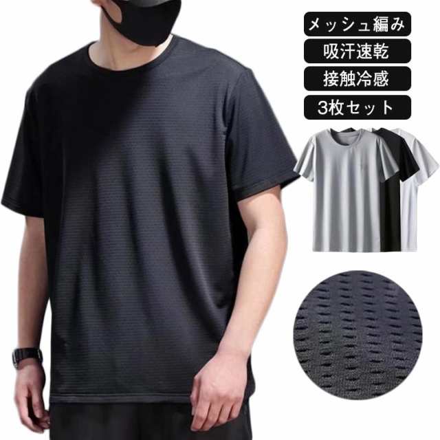 接触冷感 肌着 送料無料 ストレッチ 無地 接触冷感 メンズ 吸汗速乾 メンズ 涼しい メッシュ編み 防滴 tシャツ 3枚セット 通気性 軽量 ドライ 薄手 インナー 灰 速乾 黒 半袖