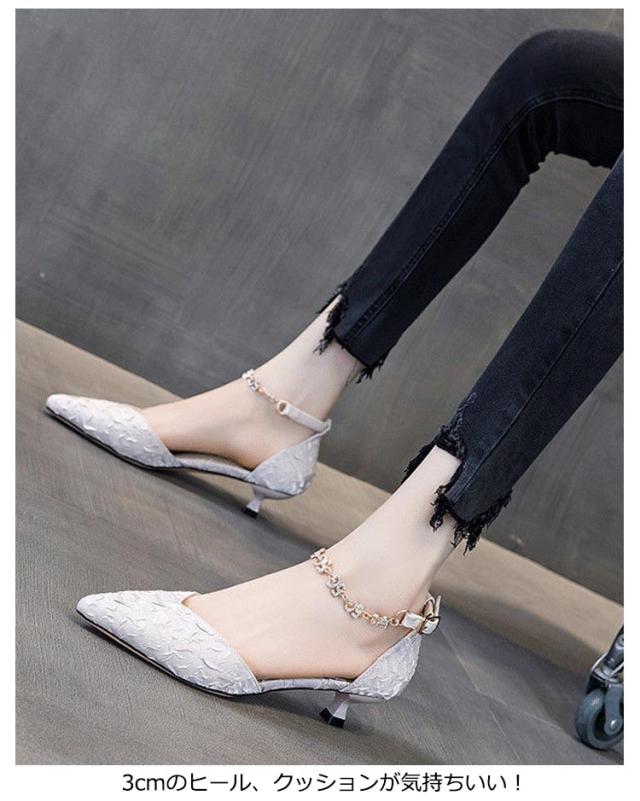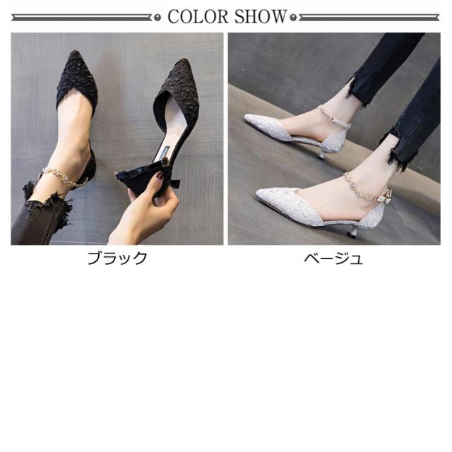 | 様々なシーンで活躍できるデザイン パーティ、オケージョンシーン、日常使いでも幅広くお使いいただけるよう、可愛く、上品な雰囲気に仕上げてみました。 3cmのヒール、クッションが気持ちいい! ストラップは取り外し可能な2way仕様です。 | |