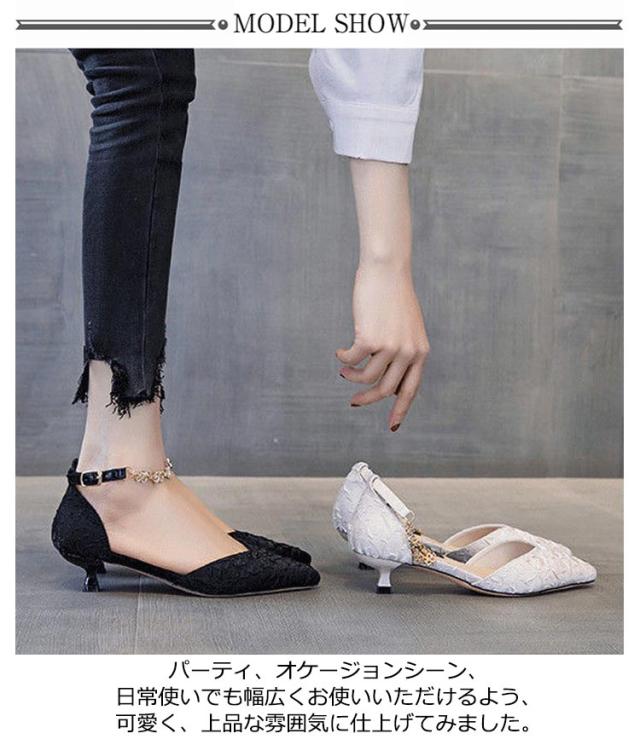 パンプス 結婚式 ストラップ 痛くない ウエディング 二次会 パーティ 太ヒール 3センチヒール レース サテン アンクルストラップ 黒 ベージュ 靴 レディース