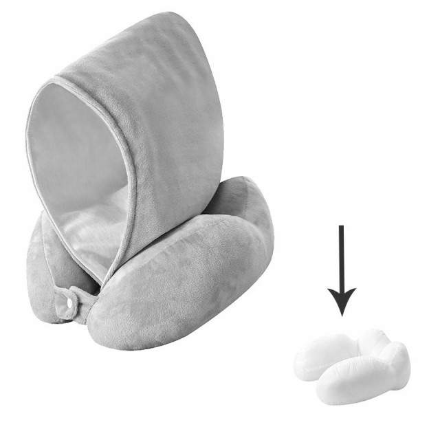 ネックピロー 飛行機 車 子供 女性 低反発 首枕 海外旅行 U型 帽子付き 仮眠 機内 バス 新幹線 エアーピロー ネッククッション