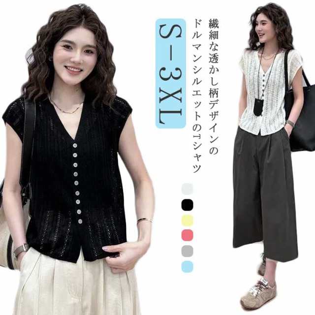 体型カバー カーディガン Tシャツ サマーニット 春夏 カットソー レディース 半袖 透かし編み 3XL セーター メッシュ トップス ゆったり ニット トップス おしゃれ ブラウス S M L XL 2XL サマーニット 春服 夏服 羽織り 通勤 デート お出かけ