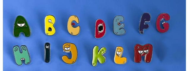 ブローチ お洒落 イニシャル メンズ レディース A-M ワッペン バッグ飾り バッグチャーム スカーフ留め 中学生 高校生 男女兼用