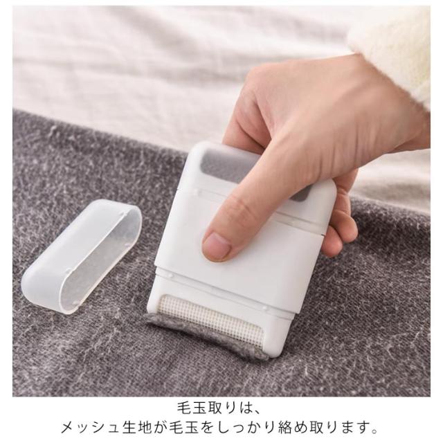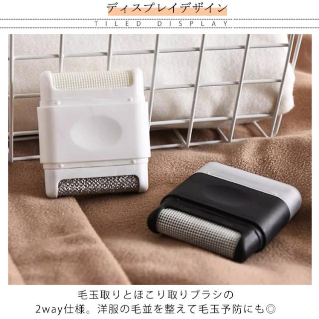 | なでるだけで簡単&手軽に毛玉が取れます。 毛玉取りとほこり取りブラシの2way仕様。洋服の毛並を整えて毛玉予防にも◎ 毛玉取りは、メッシュ生地が毛玉をしっかり絡め取ります。 ほこり取りブラシは、ほこりやペットの毛取りなどにピッタリ! コンパクトサイズ&キャップ付で、持ち運びにも便利です。 | |