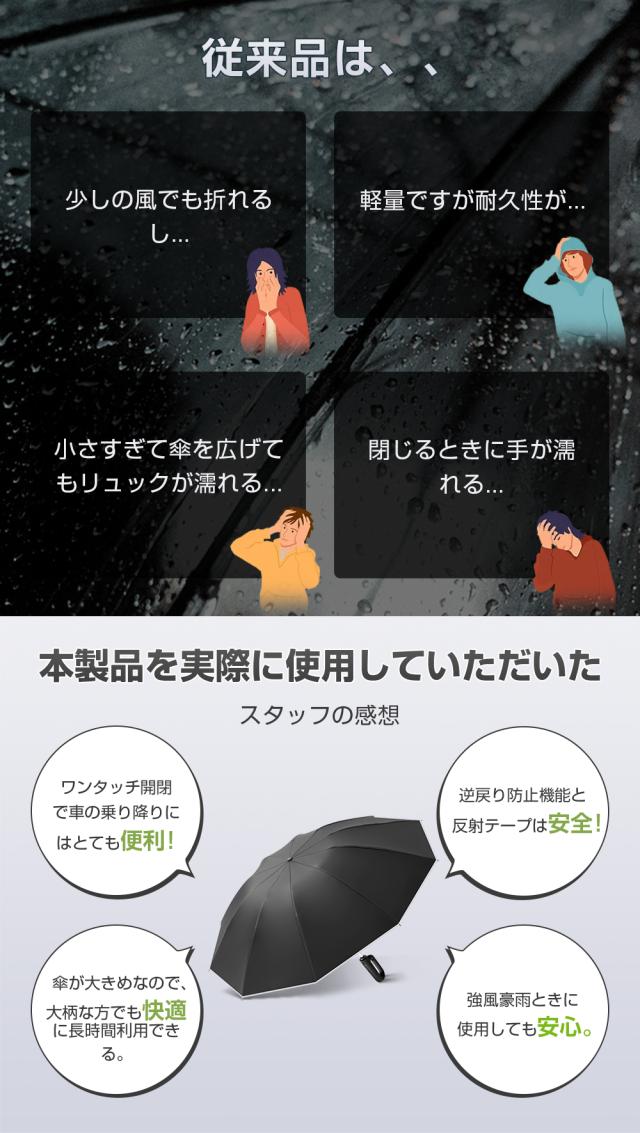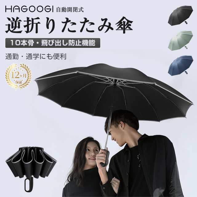HAGOOGI(ハゴオギ) 折りたたみ傘 ワンタッチ 自動開閉 逆戻り防止安全設計 折り畳み傘 メンズ 傘 逆折り式 大きいサイズ 超撥水 飛び出し防止 耐風 反射テープ 台風対応 丈夫 10本骨 強風に強い 豪雨/梅雨/台風対応 ジャンプ式 カラビナ設計 軽量 男女兼用