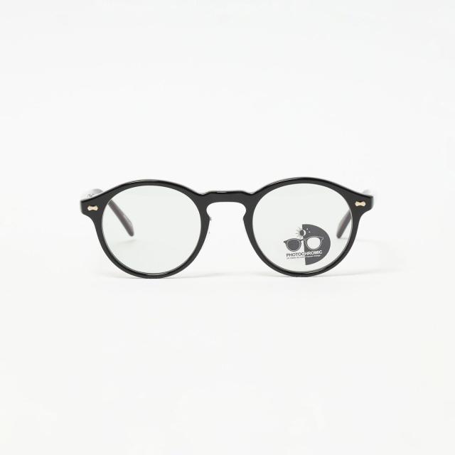 飽きのこない王道のボストンフレーム「Monica」に、紫外線で色が変わる調光レンズを組み合わせた一本。
