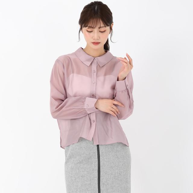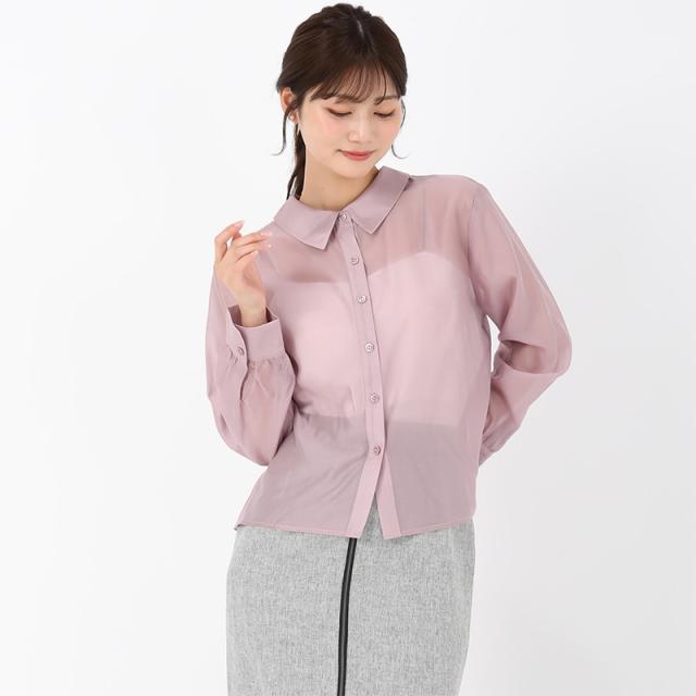 透け感のあるシアー素材で仕立てられたシャツ。背面の首元にはリボンを施しており、後ろ姿のアクセントになっています。ボタンを開けて羽織りのように着用した着こなしもおすすめ。季節の変わり目のお出かけシーンに大活躍してくれるアイテムです。■fabric透け感[有り]裏地[無し]伸縮性[やや有り]生地の厚さ[薄手]