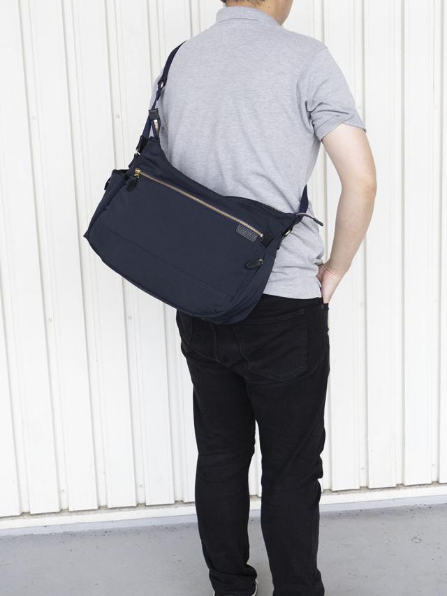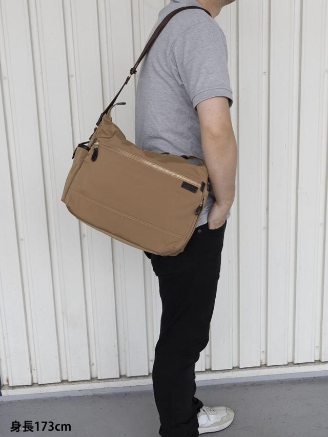 さらっとした上質なナイロンに存在感のあるYKK金属ファスナーを合わせたシンプルでおしゃれな男女問わずお使いいただけるJPEシリーズのショルダーバッグです。