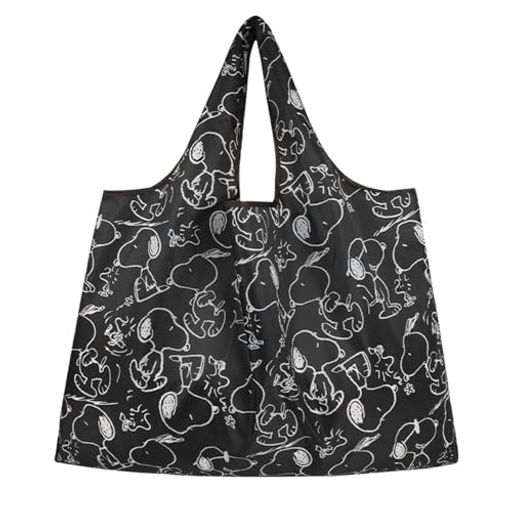 エコバッグ 可愛い 折りたたみ キャラクター アニメ かわいい おもしろ 洗える 大容量 買い物袋 ショルダー トートバッグ ギフト (ブラック)