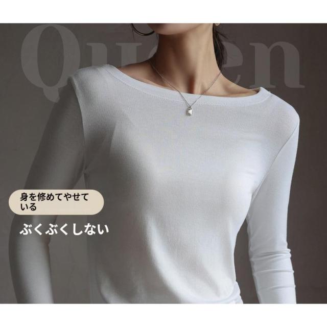 長袖カットソー ロングTシャツ レディース 女性 トップス ボートネック 指穴付き 重ね着風 フェイクレイヤード シンプル お洒落 可愛い お出かけシ