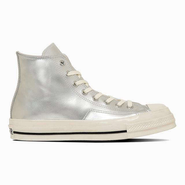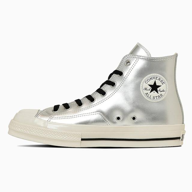 アッパーはシルバーのレザー、モノクロ仕様のアンクルパッチやラインを一本にしたテープ等のディテール