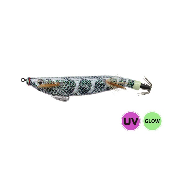 イカのベイトでもある「キビナゴ」をモチーフにしたイカメタルゲーム用ドロッパー。2.0号、2.5号ともに造形美を追求したフォルム。イカに「食べごろベイト」と認識させます。2.5号はボディ側面の前後に4本の羽根を備え、ステイ、フォール時に姿勢を安定させるスタビライザーを担います。2.0号は2本羽根タイプ。食い渋りのイカに効果を発揮。鈎は必要十分な小型単笠を採用。鈎を嫌うイカへの違和感を軽減させました。鋭い鈎先は、触れると掛かります。イカに実績のあるカラーから、ケイムラ、グローまで幅広いラインナップ。更に、#011キビナゴは一誠オリジナル筋肉ホロを使い、キビナゴの魚体をリアルに再現しています。
