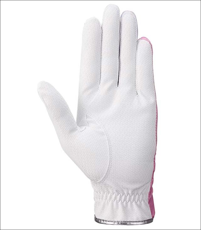 また、グリップ力を高めるヘックスパターンのエンボス加工を施した合成皮革を掌側に使用する事でクラブのにぎりやすさをサポート。