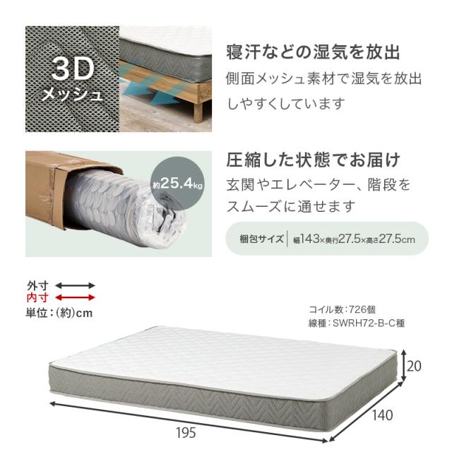 【商品サイズ(約)】幅140×奥行195×高さ20cm