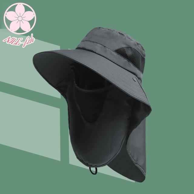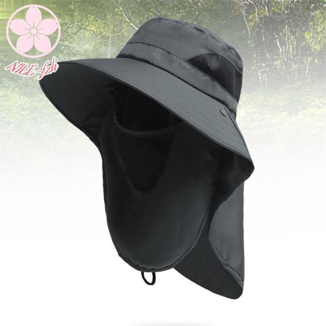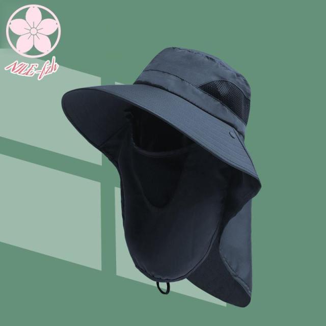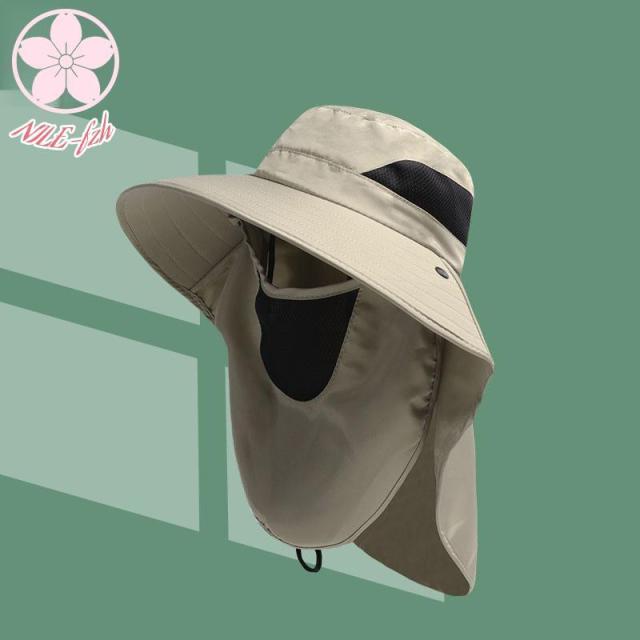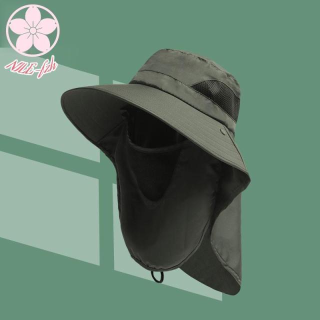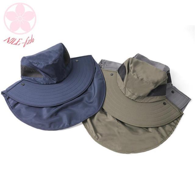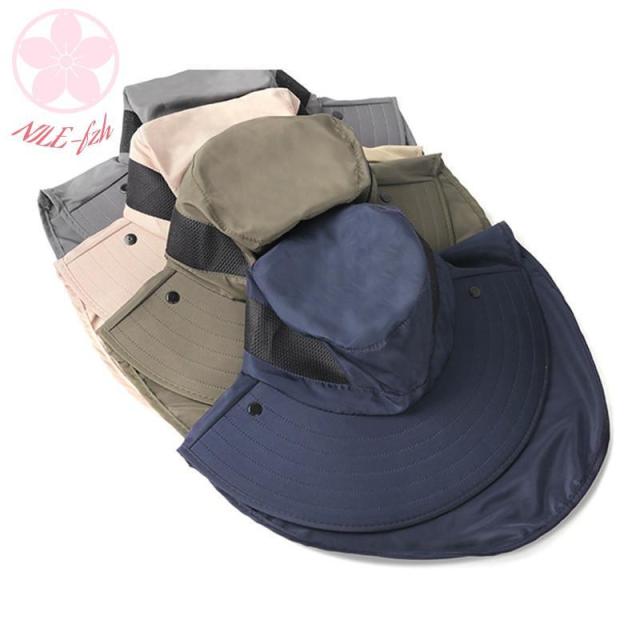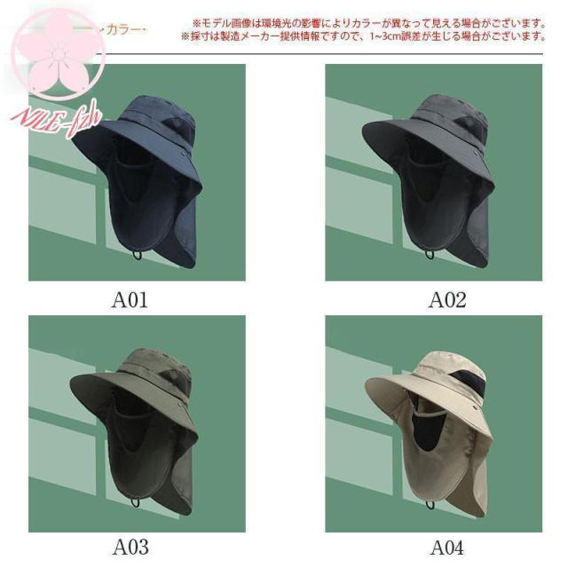 農作業用日よけ帽子 メンズ ハット つば広 アウトドア サファリハット 夏 父の日 春 メッシュ 父の日 多機能 UVカット 紐付き フェイスカバー お釣り