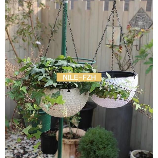 プラスチック製の吊り下げ式ハンギングプランターです。